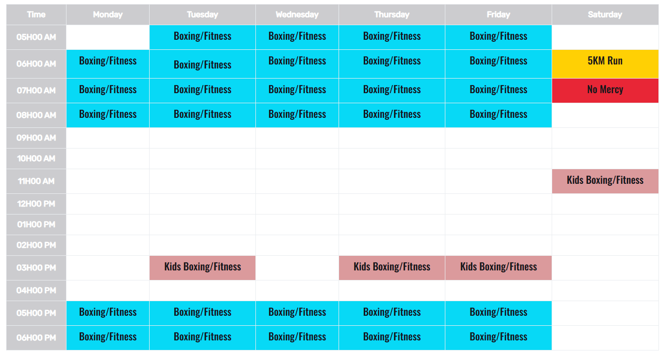 NB: Classes will run as per timetable (Booking is essential) and the gym will only have one class on public holidays at 09:00 AM.